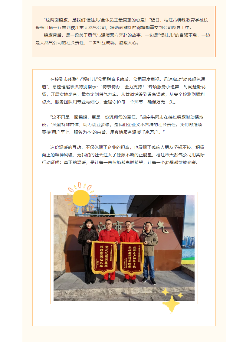 藍(lán)焰點(diǎn)亮希望,真情溫暖特教——枝江市天然氣公司公益助殘紀(jì)實(shí)