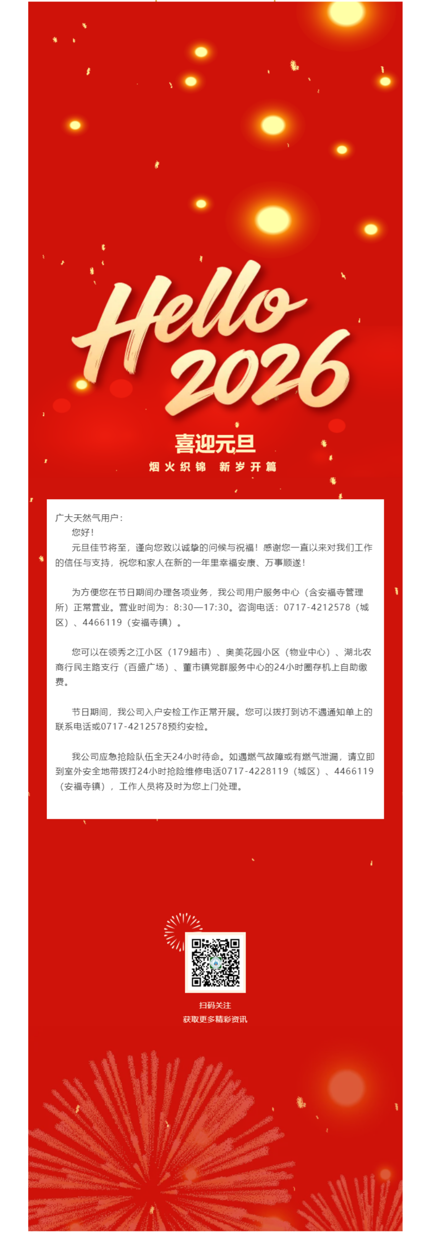 枝江市天然氣有限責(zé)任公司祝全市人民元旦快樂!